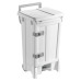 Контейнер для сміття OPEN-UP. Виготовлений з удароміцного пластику білого кольору. Ємність для збору відходів розрахована на 90 літрів. Оснащений передніми дверима, кришкою із засувками та педаллю натискання. Передні двері допомагають оператору легко очистити контейнер всередині та вийняти мішок зі сміттям без особливих зусиль. Ергономічна висока рукоятка і маневрені колеса діаметром 125мм.