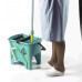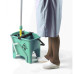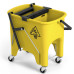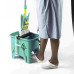 Подвійне поліпропіленове відро для роздільного використання води для полоскання та миючого розчину об'ємом 15 л. У комплект входить роликовий віджимання, педаль і 4 колеса діаметром 50 мм. Поліпропіленова ручка для перенесення відра.